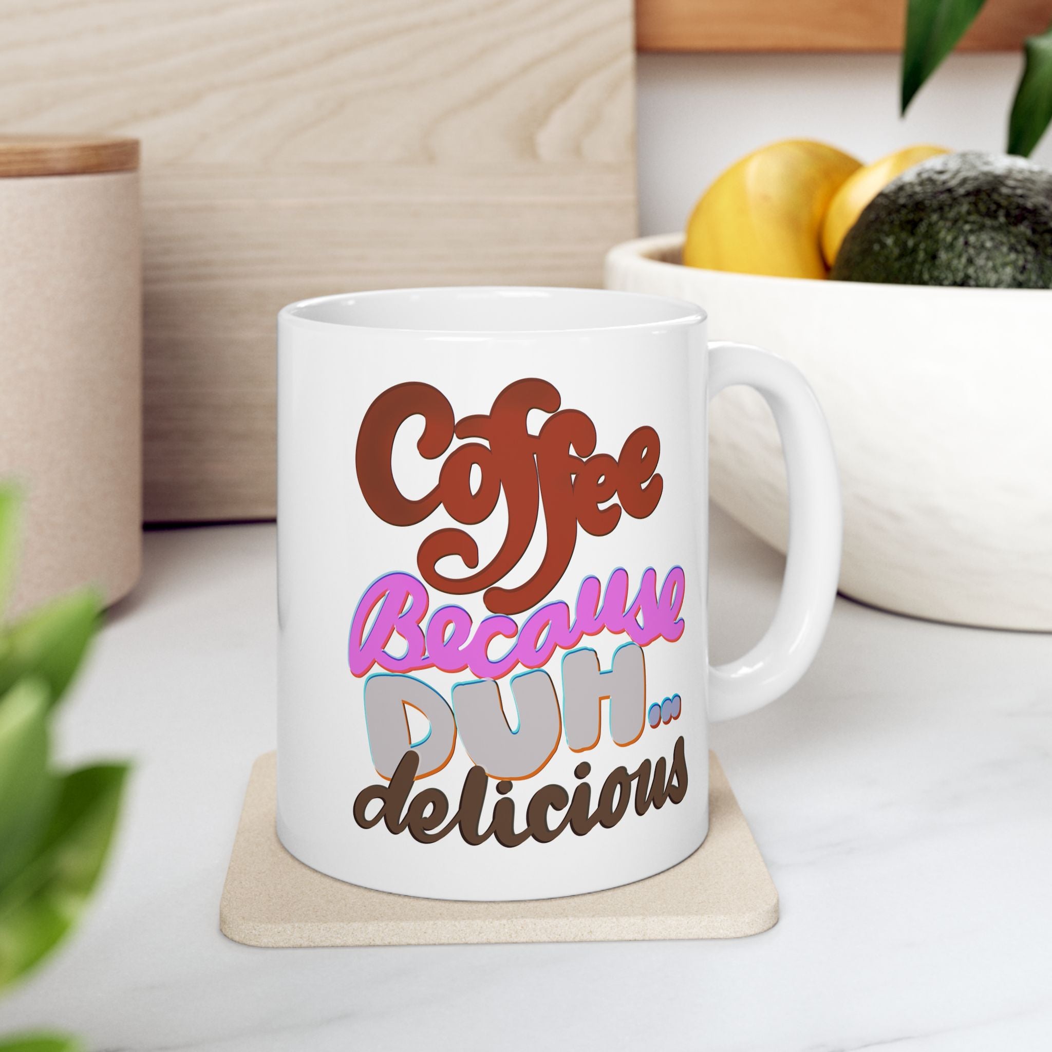 COFFEE BECAUSE DUH DELICIOUS Ceramic Mug, (11oz, 15oz)
