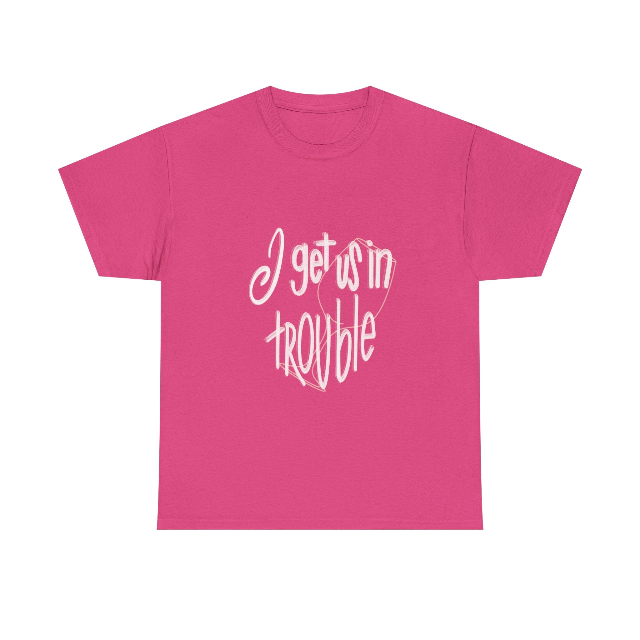 Funny Unisex Heavy Cotton Tee - "I Get Us in Trouble" - Perfect for Friends & Celebrations