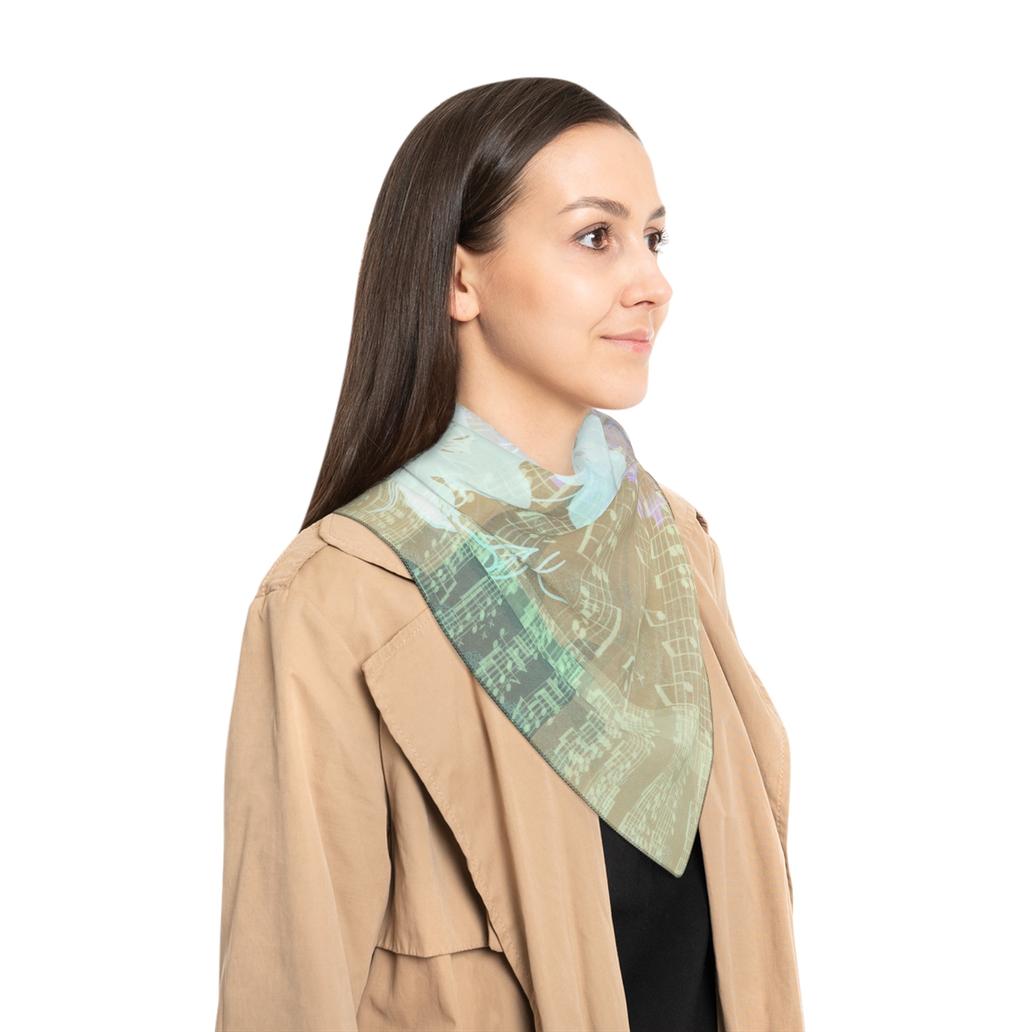 Made from high quality poly voile and poly chiffon, this sheer scarf is extremely light and airy. Outstanding original art turns it into a head turning style accessory.