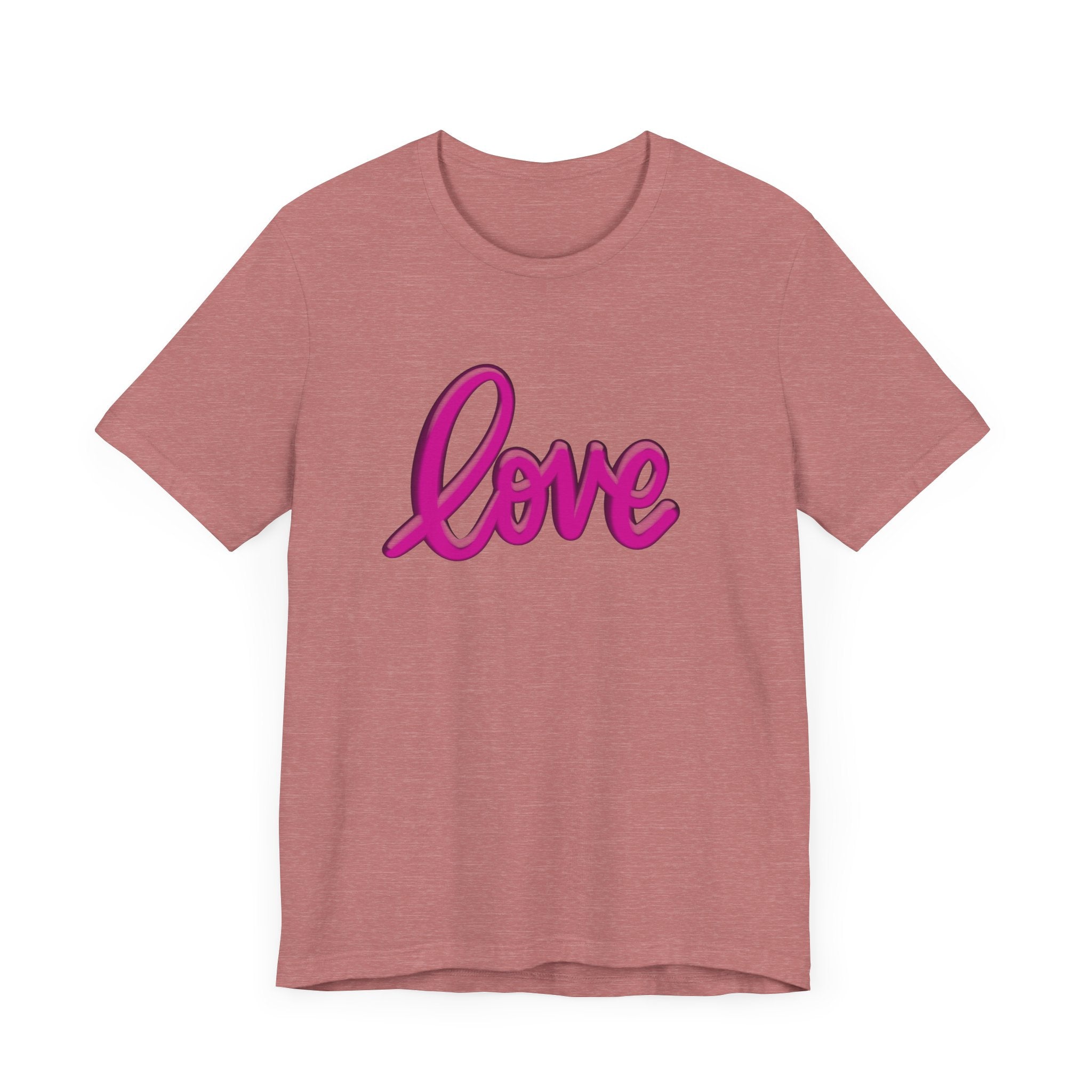 Introducing our Unisex Jersey Short Sleeve Tee, a perfect blend of comfort and style. This tee is crafted from 100% Airlume combed and ring-spun cotton, making it incredibly lightweight and breathable—ideal for active days or lounging at home. The vibrant 'love' design adds a touch of positivity to your wardrobe, making this tee a versatile choice for everyday wear. Whether you're dressing it up for a casual outing or keeping it relaxed for a cozy day in, this tee fits seamlessly into any setting.